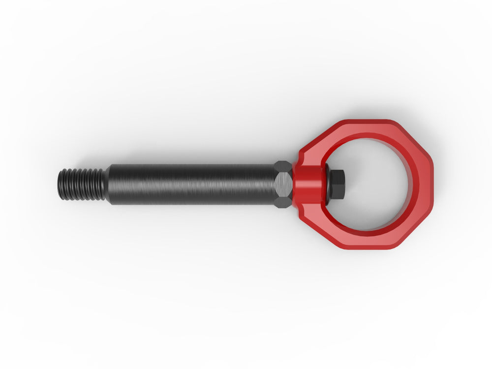 Both the stem and bolt threads are pre-coated with Vibra-tite threadlocker. This keeps your tow hook from loosening due to vibration. The special threadlocker is designed to remain flexible, removable, and reusable.