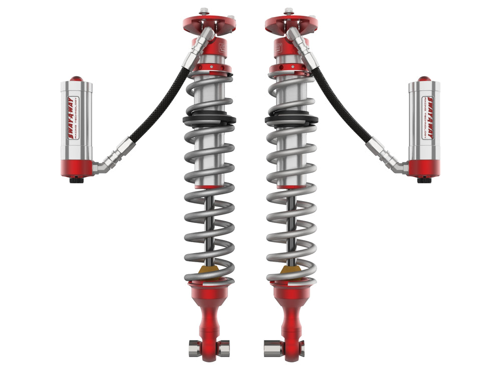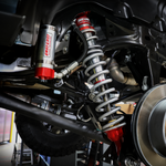 These rear coilovers are 100% designed and built in the USA, and feature high strength steel cylinders that are coated with a two-step zinc plated finish designed and salt spray tested to withstand the harshest of environments. A red anodized finish on all external CNC machined aluminum components will protect against the elements for years to come.