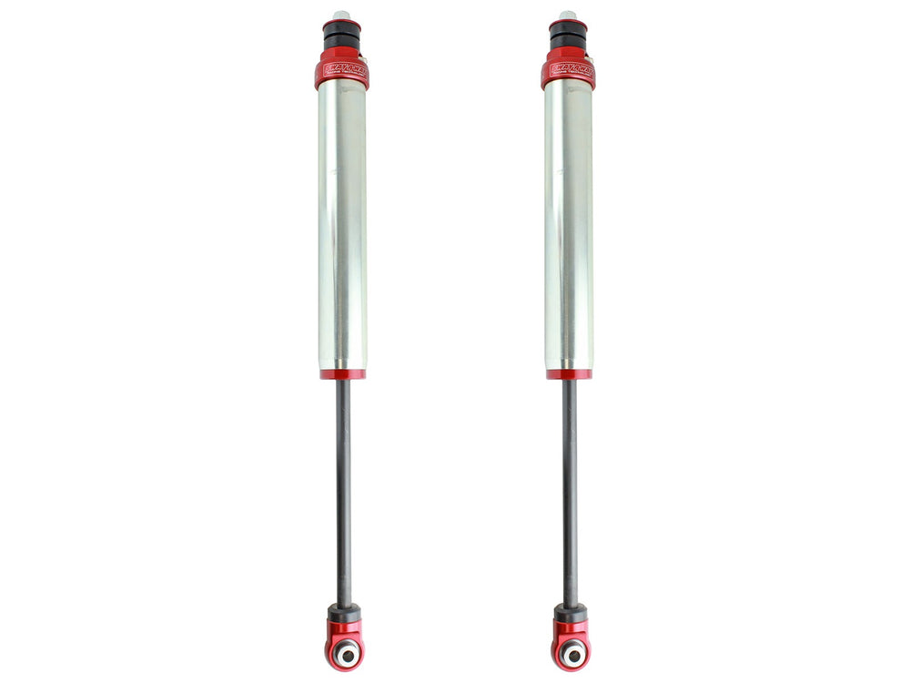 This kit offers adjustable ride height and better off road damping curves without sacrificing any on road comfort or handling. These rear shocks are 100% designed and built in the USA that feature bright zinc plated steel cylinder bodies and CNC machined aluminum components. This package is designed as a direct fit application and requires no modifications to the vehicle.